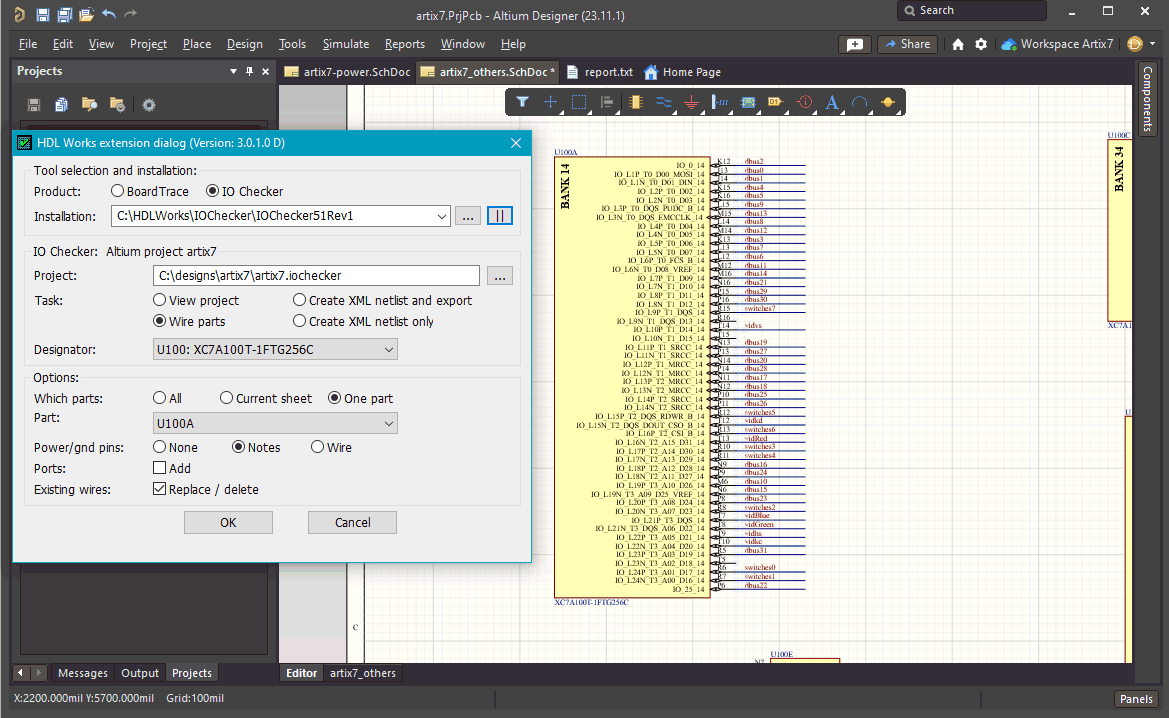 HDL Works has developed an Altium Designer extension to form a bride between the schematic capture design and IO Checker. The extension allows you to: